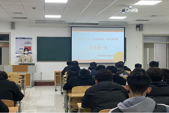 9月18日,21级新能源班团支部开展了“‘喜迎二十大、永远跟党走、奋进新征程’开学第一课”主题团日活动,辅导员刘宏慧老师与两个班团支书共同完成了此次主题团日活动。