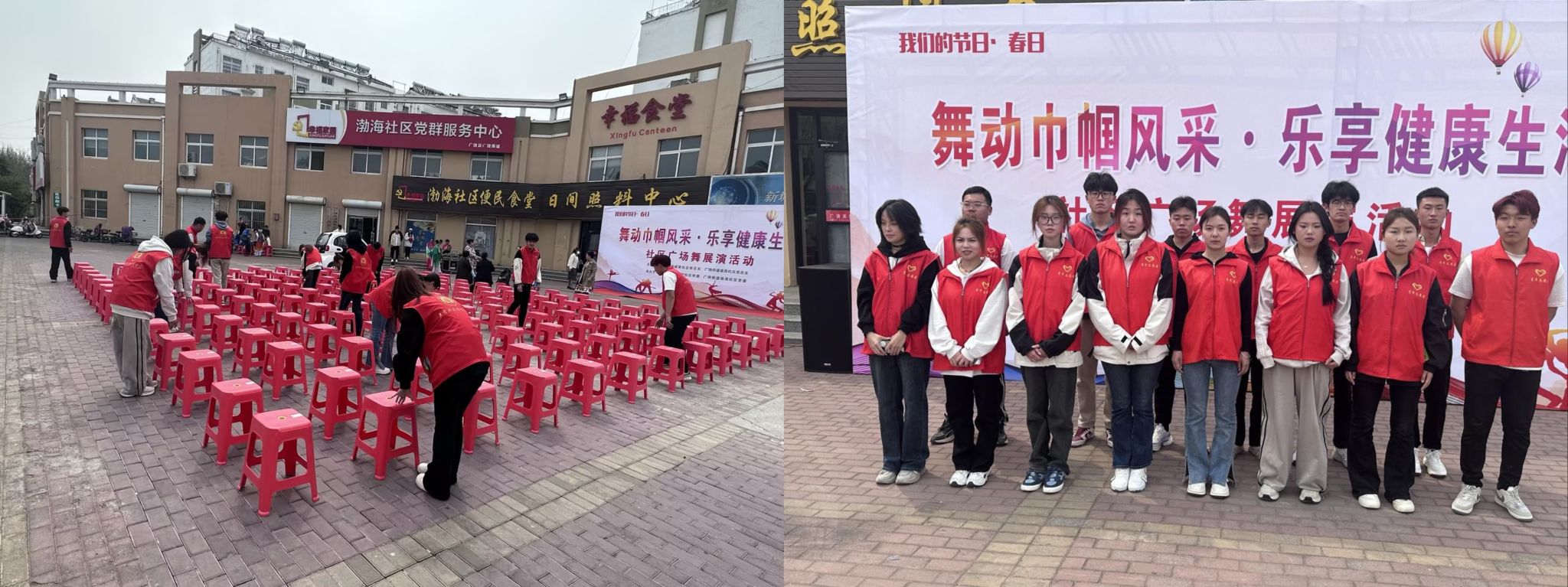 (4月10日一场精彩纷呈的社区“文艺汇演”在渤海社区成功举行。此次汇演吸引了众多学生和社区居民前来观看,在这场活动中,一群热情洋溢的志愿者成为了一道亮丽的风景线。)