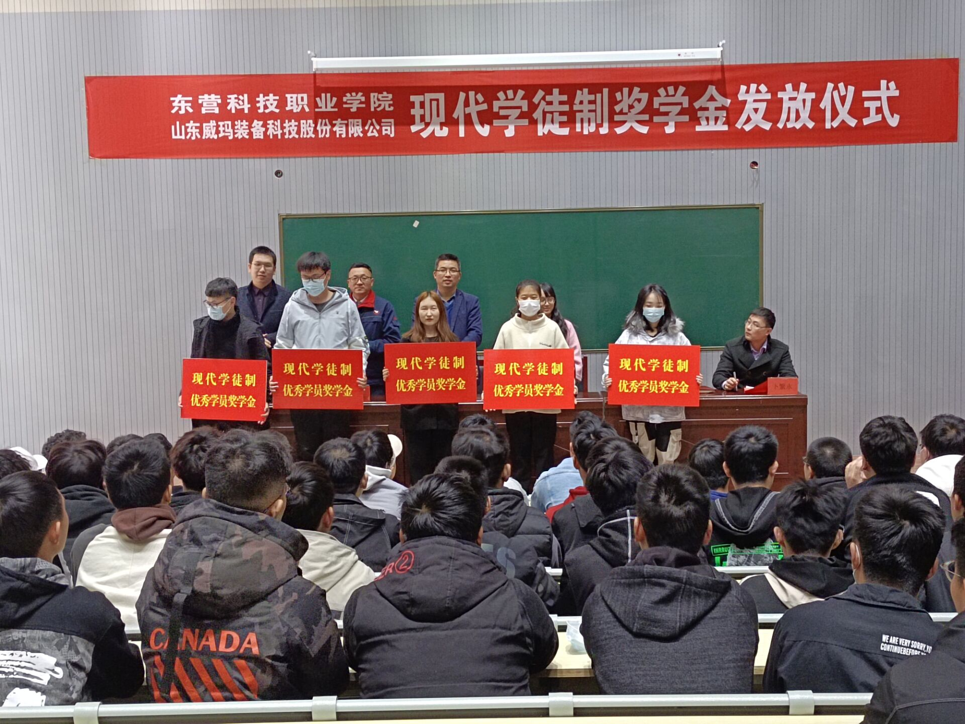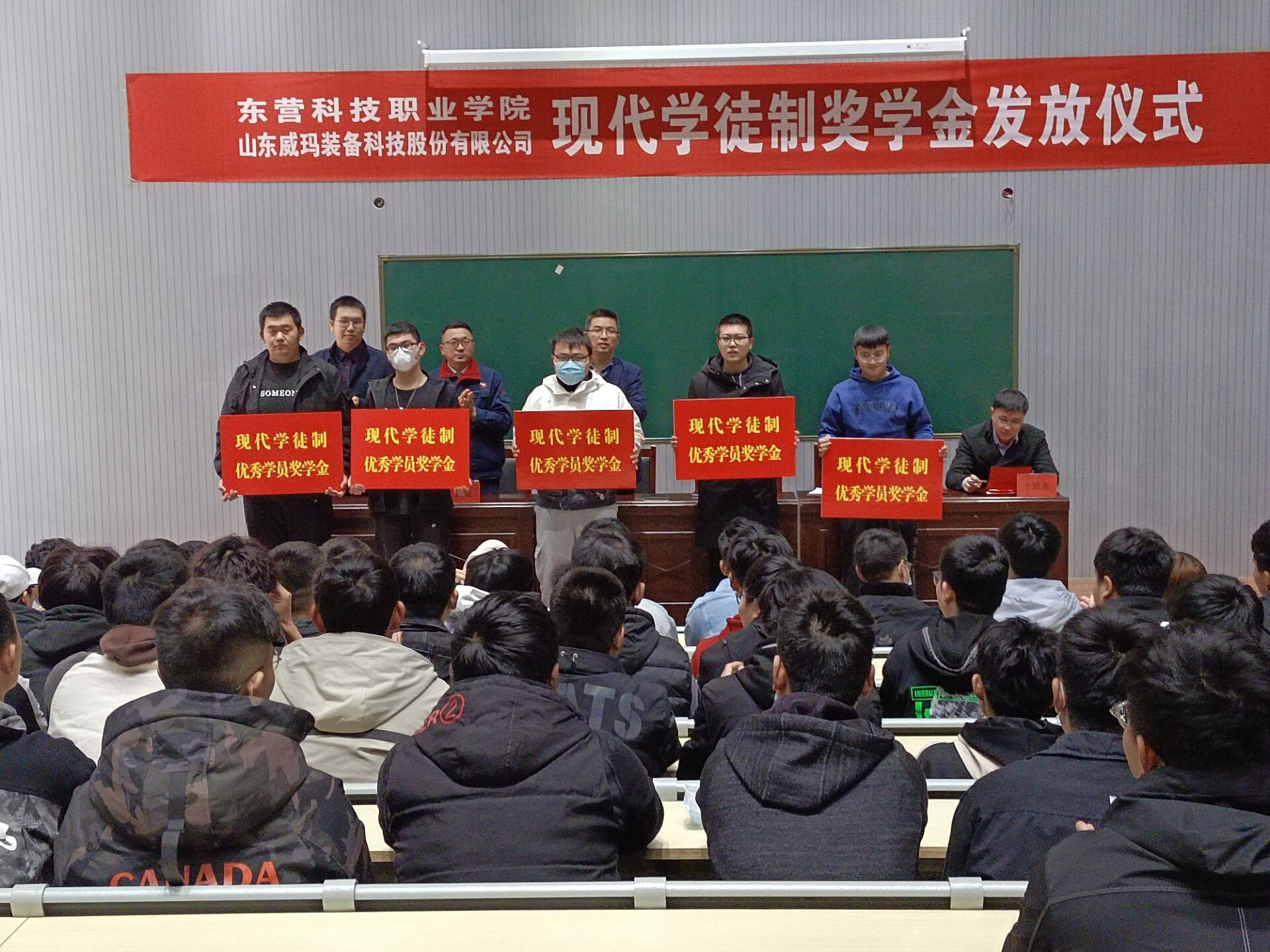 3月17日上午,“东营科技职业学院·山东威玛装备科技股份有限公司现代学徒制奖学金发放仪式”在报告厅隆重举行。我院安丰金院长、山东威玛装备科技股份有限公司王国良副总经理出席本次会议并讲话,山东威玛装备科技股份有限公司唐显峻经理、解小庆工程师,我院朱建平、卜繁永老师以及机械制造与自动化专业全体在校学生参加了本次奖学金发放仪式。