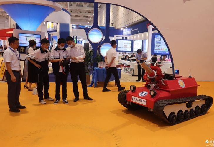 5月20日,2021年职业教育活动周全国职业院校技能大赛职业教育博览会在山东国际会展中心正式启幕。东营科技职业学院可以免费看的黄色网站张传祥、秦捷等同学自主开发的远程移动式消防炮精彩亮相。